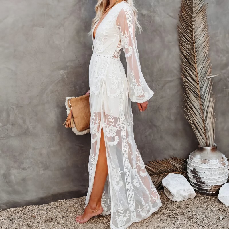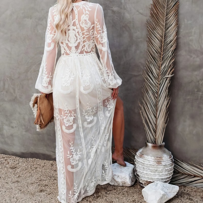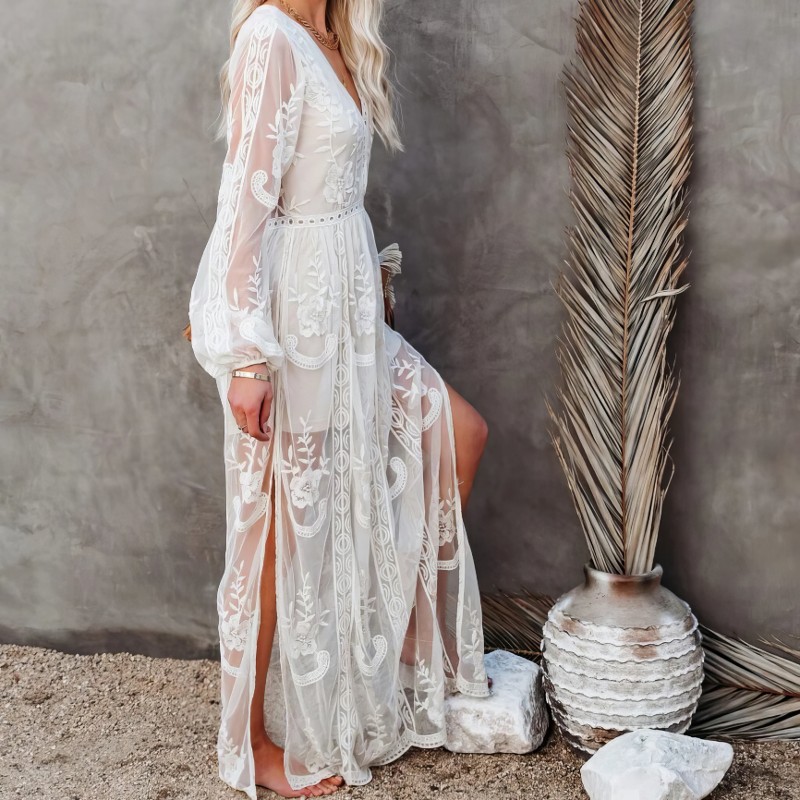 Rencontrez « Eloïse », votre nouvelle complice de la garde-robe bohème. Cette Robe Longue Dentelle Bohème captive par sa pureté et son aura romantique, invitant à se draper dans l’élégance décontractée. Idéale pour les journées ensoleillées ou les soirées d’été, sa légèreté vous transporte dans un rêve de dentelle blanche.