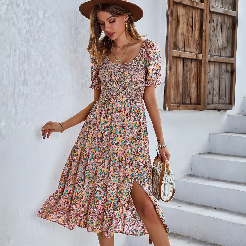 Fabriquée en fibre synthétique de qualité, cette robe offre une sensation de douceur au toucher tout en assurant une tenue durable. Le rose pâle de la robe est sublimé par des motifs floraux qui évoquent une promenade dans un jardin en fleurs. Le col bateau ajoute une touche d’élégance en mettant subtilement en valeur le décolleté, tandis que les manches courtes confèrent à cette robe un air décontracté. La Robe Longue Fleurie Rose est un choix exquis pour celles qui cherchent à allier confort, style et féminité dans un seul vêtement.