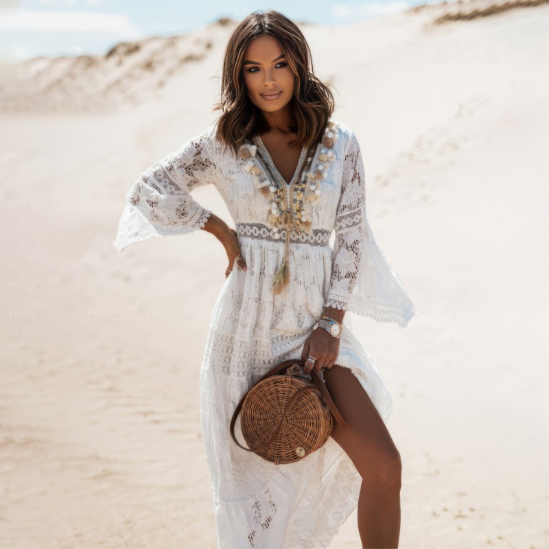 La Robe Maxi Bohème – Esmeralda avec ses détails audacieux est un incontournable, mais pour une allure plus épurée et raffinée, la Robe Blanche Bohème Chic – Willow offre une alternative de choix, combinant style bohème et simplicité intemporelle.