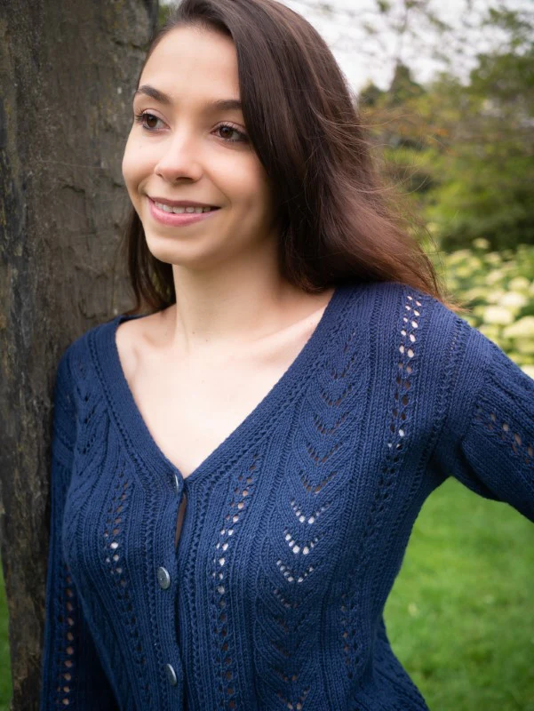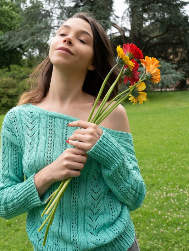 Il est en coton Cachemire, léger et doux pour l’été. Ce gilet est un mélange de plusieurs points ajourés.