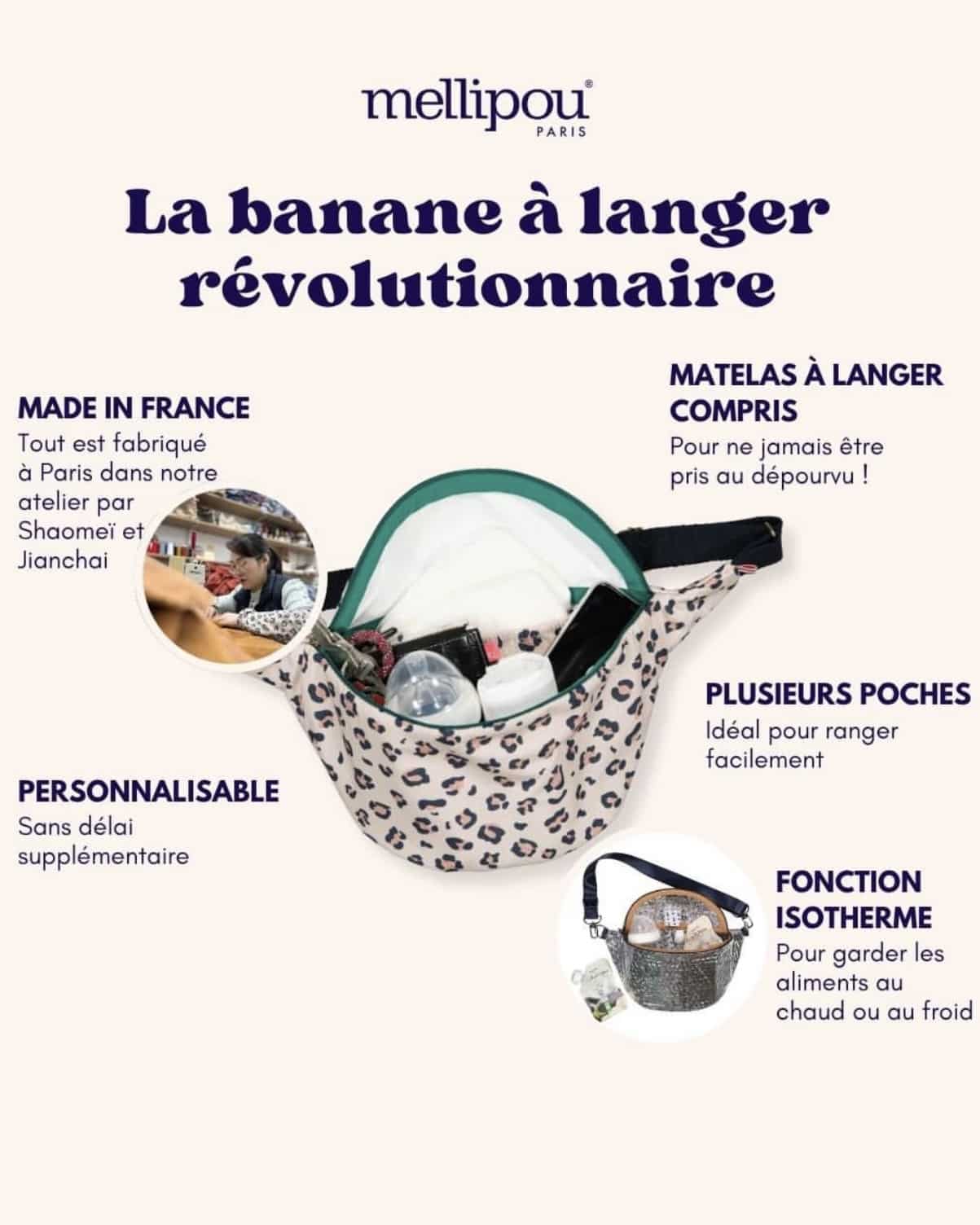 - Fonctionnalités Pratiques : en plus de son aspect élégant, ce sac banane à langer ne fait aucun compromis sur la fonctionnalité. Il comprend une multitude de poches et compartiments intelligemment conçus pour ranger tout ce dont vous avez besoin pour votre bébé, des couches aux biberons en passant par les lingettes et les vêtements de rechange. Et comme Mellipou pense à tout, un matelas à langer ultra-fin vous est fourni !