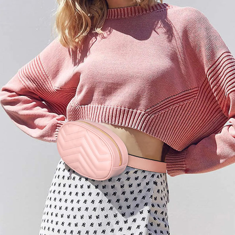 Depuis quelques mois, le sac banane ou sac ceinture s’impose comme le sac à posséder absolument. Après quelques années d’errance, l’accessoire star des 90’s est de retour sur le devant de la scène .Peu à peu, le sac banane est devenu plus élégant et est passé de l’accessoire ringard de randonnée de nos parents à un véritable phénomène de mode. Ce petit sac ceinture matelassé Chevron rose Jane est aussi futé qu’il est stylé. En plus de sa ceinture ajustable et amovible, il peut également se transformer en “shoulder bag” grâce à une bandoulière chaîne ‘non fournie) lorsque le besoin s’en fait sentir.