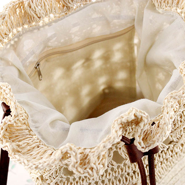 Ce magnifique sac paille bandoulière crochet avec une base en raphia tressée est l’accessoire idéal pour cet été. Pour ne pas abîmer vos effets personnels, ce petit sac paille est entièrement doublé avec un tissus. Impossible de perdre votre rouge à lèvre ou votre porte-monnaie grâce à sa fermeture tirette. Succombez au charme de ce sac paille tissé en dentelle. Il est également doté d’une sangle en similicuir, matière respectueuse des animaux. Original et fonctionnel, il est le compagnon idéal des belles journée ensoleillées.