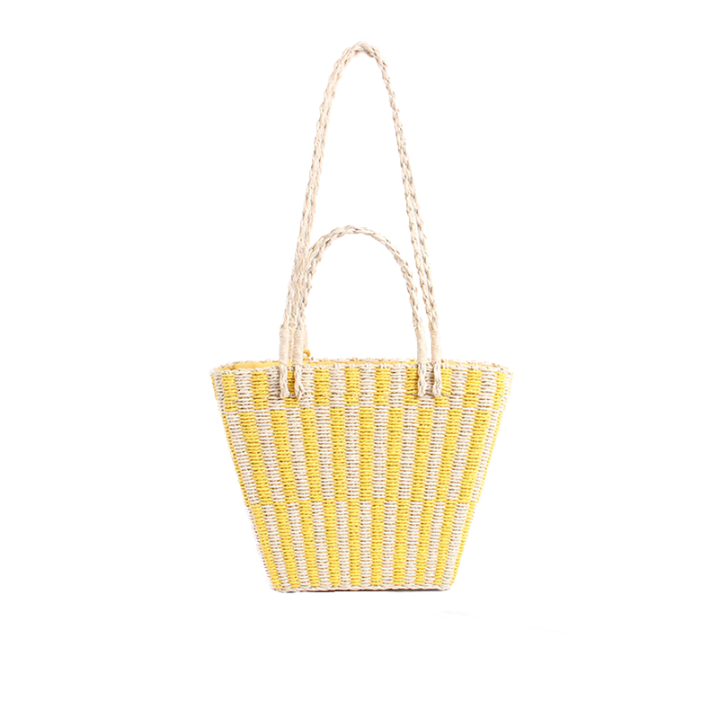 Sac Paille et Pompon Trapèze Jaune : l’Accessoire Bohème
