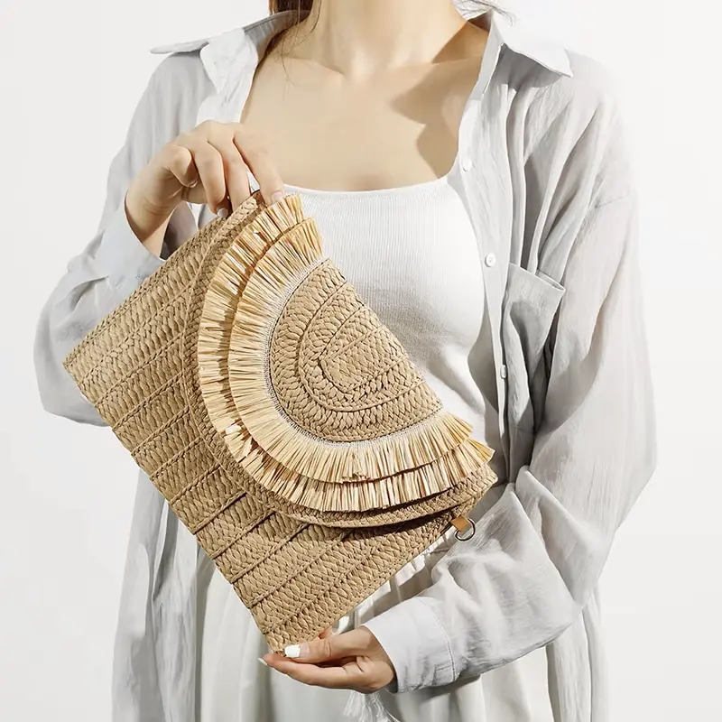 Sac Pochette Paille Franges Bohème