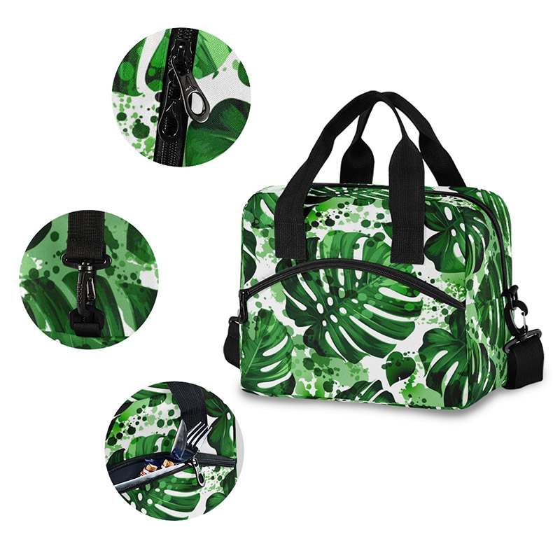 Ce lunch bag femme se fait discret et élégant avec son imprimé feuilles de Monstera ! Ce sac repas saura s’adapter à votre tenue du jour. Son design très raffiné et passe partout est idéal pour le bureau. Nombreuses sont les occasions de se servir de ce sac isotherme pour garder son repas à bonne température.