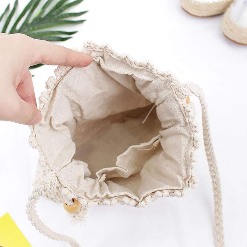 Ce magnifique sac seau en crochet Lona est l’accessoire idéal pour cet été. Ce sac en forme de seau est entièrement doublé avec un tissus en coton pour ne pas abîmer vos effets personnels. Impossible de perdre votre rouge à lèvre ou votre porte-monnaie grâce à sa fermeture tirette.