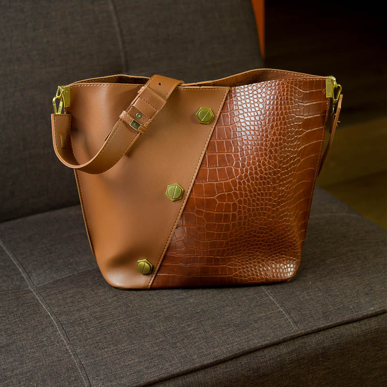 sac seau cuir croco zana : Original et Elégant