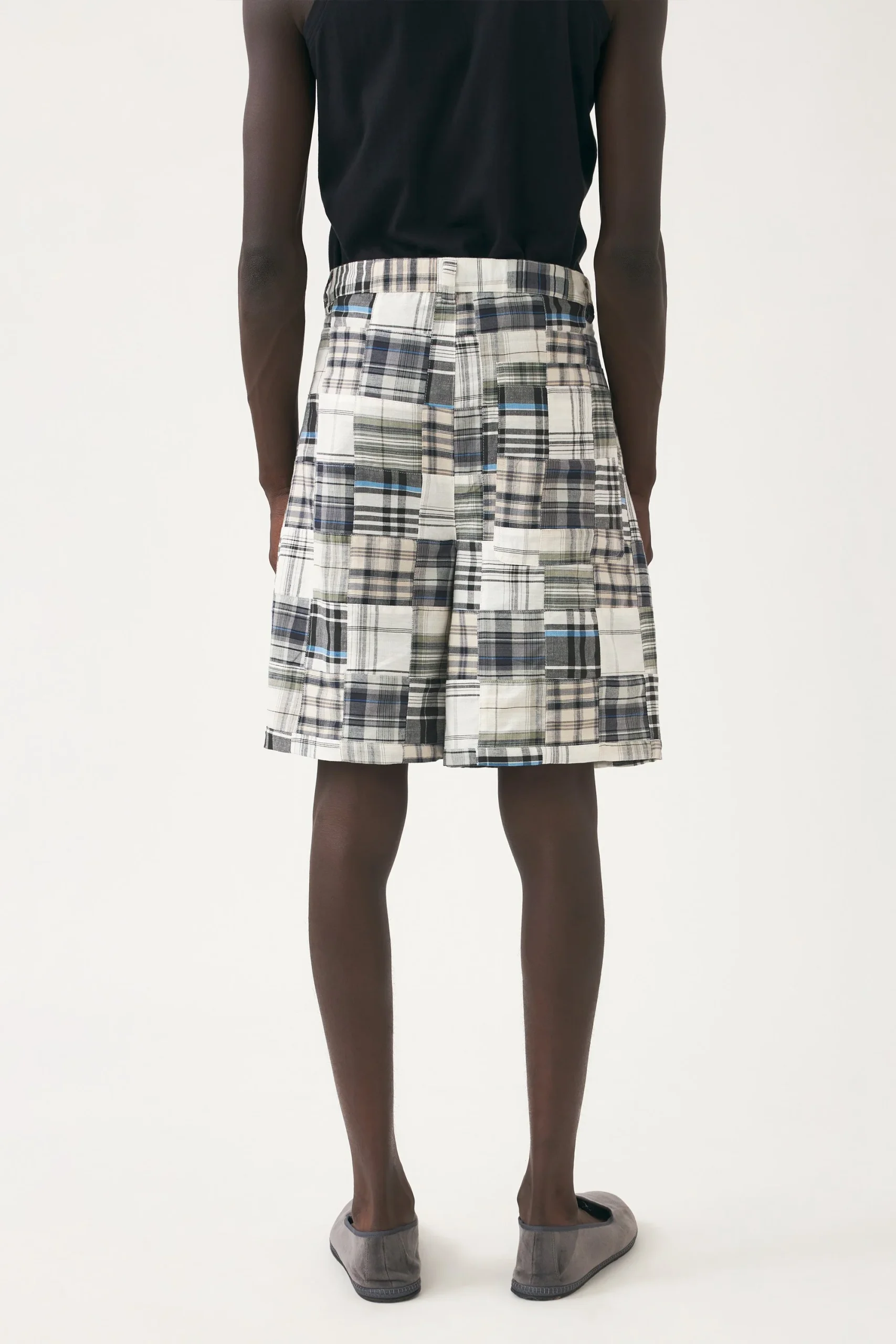 Short imprimé en voile de coton. Deux poches latérales. Ceinture en cordon insérée à l’aide de deux oeillets inspiration bateau.
