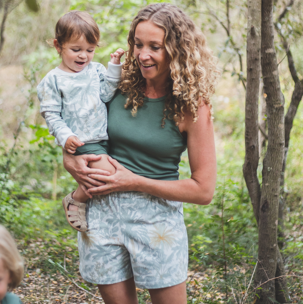 Short en sweat, taille élastique paperbag et poches. Le short fait +/- 37cm de long en M.