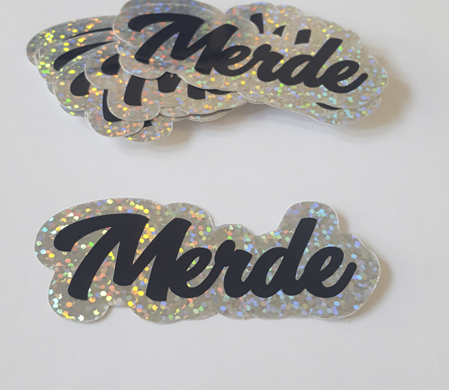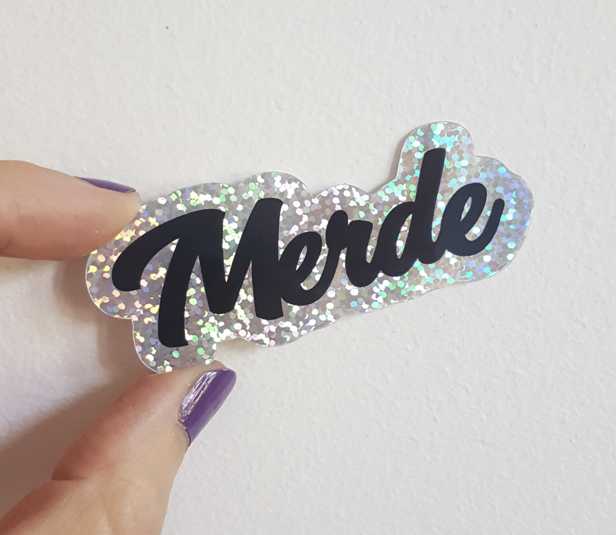 Craquez pour notre magnifique sticker MERDE pailleté. Sur vos cahiers, votre ordinateur, votre portefeuille, votre frigo, votre sac… Personnalisez vos affaires avec un sticker original et drôle !