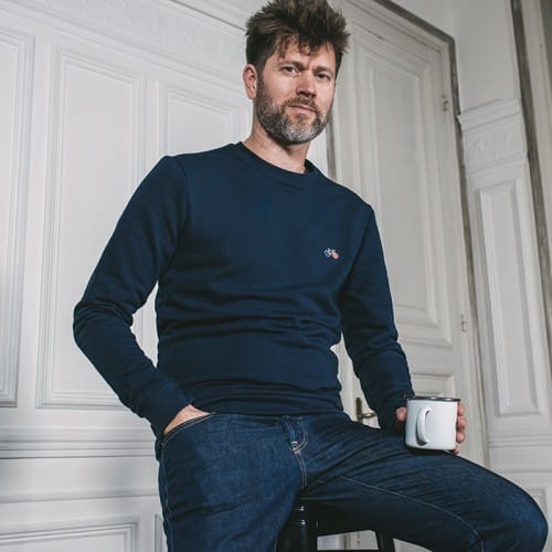 Il a été tricoté dans la Somme par Laurent, puis a été confectionné dans le Nord par Henri-Rémi et enfin, a été brodé en Loire Atlantique par Jean-Marc. Totalement Made in France.