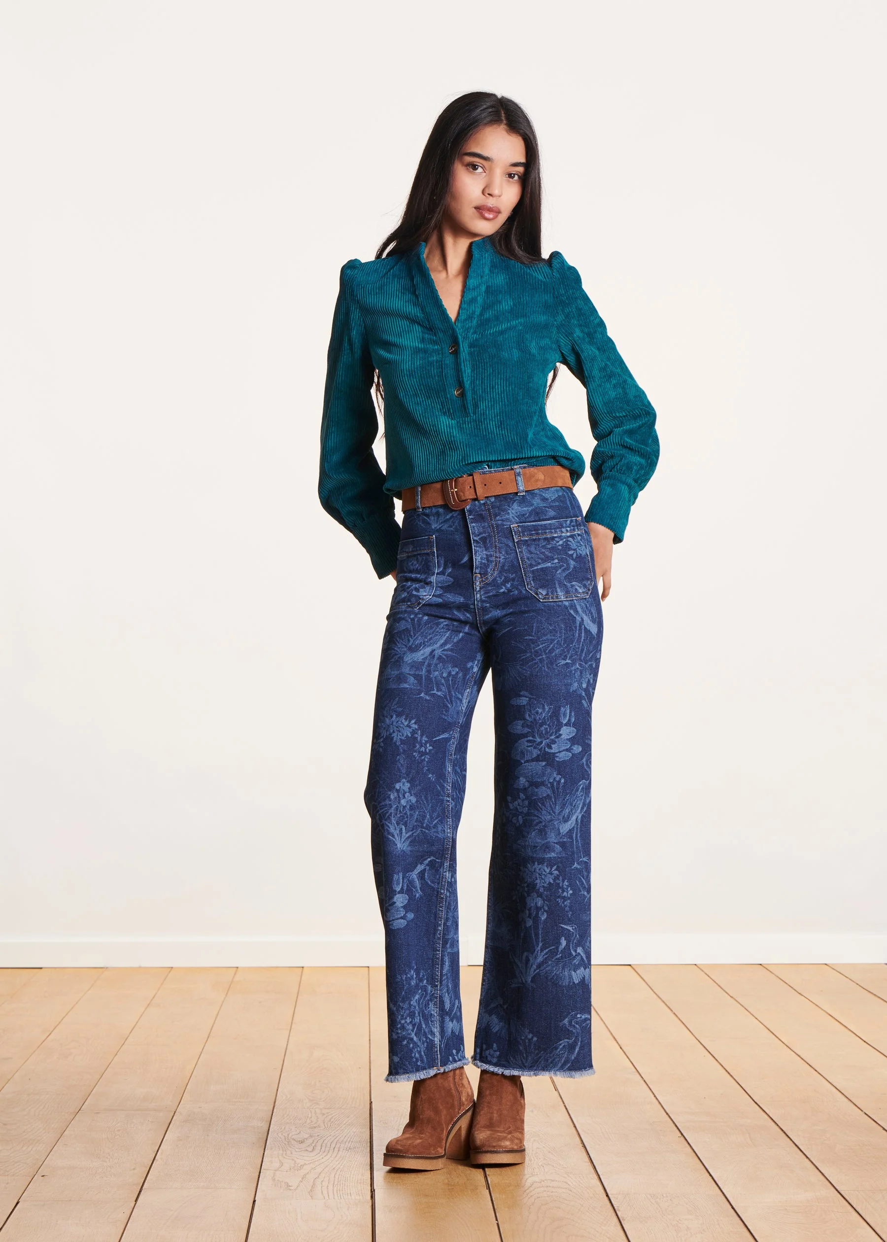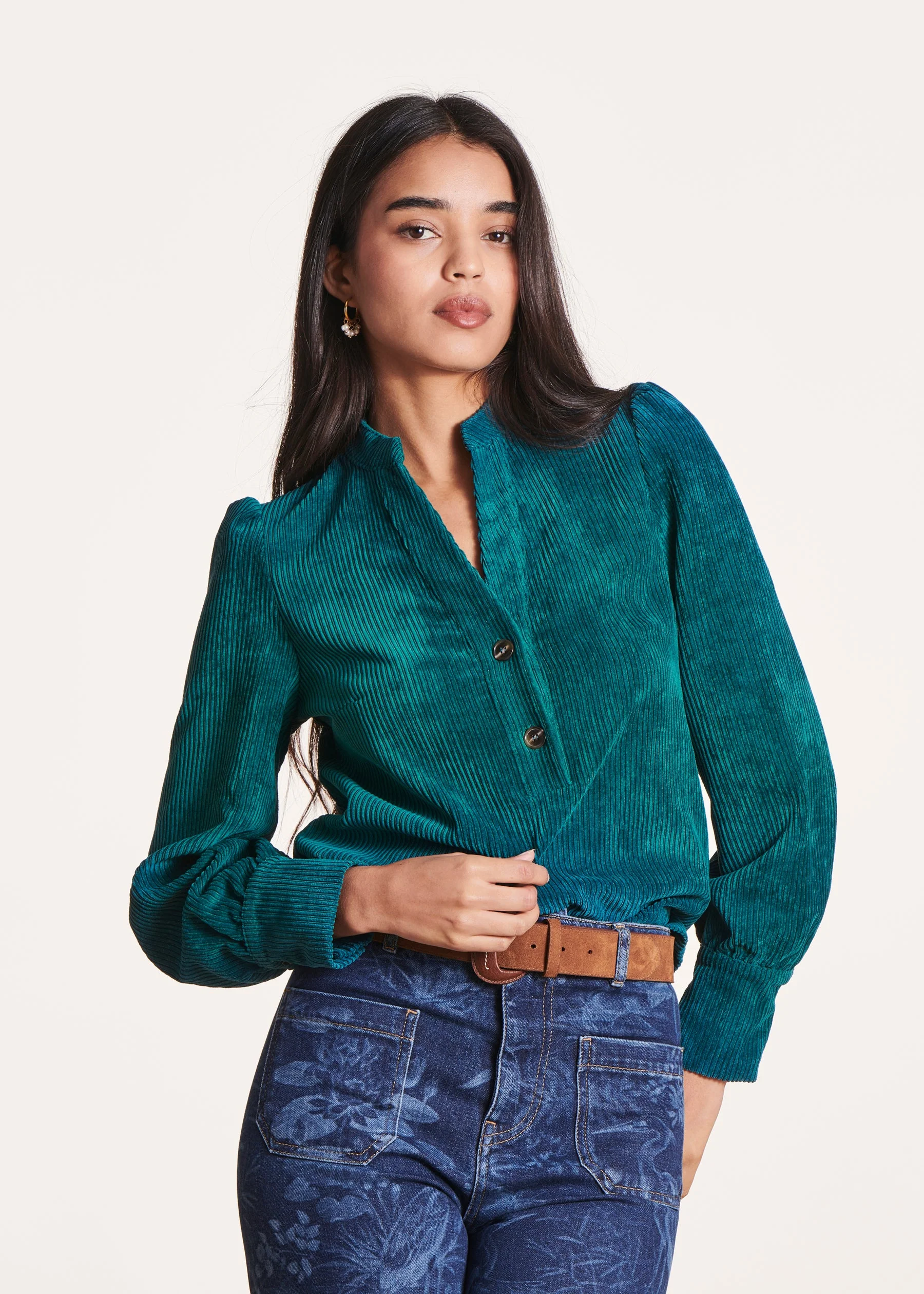 – Manches longues bouffantes avec larges poignets boutonnés