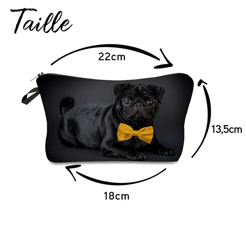 [/vc_column_text][vc_empty_space][vc_column_text]Cette Trousse Bouledogue est destinée aux jeunes filles et aux femmes qui adorent le maquillage et les bouledogues français ! Que vous soyez la reine du bazar organisé ou que vous changiez de sac fréquemment : emportez votre pochette et son contenu partout avec vous. Son design ultra mignon rendra jalouses toutes vos copines.