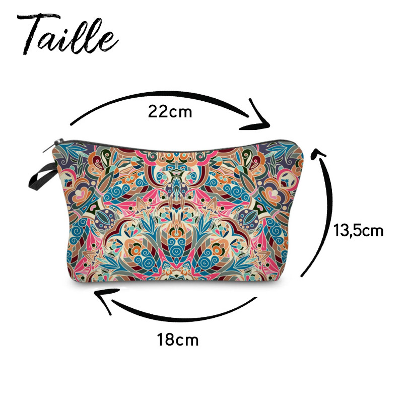 [/vc_column_text][vc_empty_space][vc_column_text]Cette Trousse Cosmétique Mandala est idéal pour les jeunes filles et femmes qui souhaitent afficher leur style Bohème ! Que vous soyez la reine de l’organisation ou que vous changiez de sac fréquemment, cette petite trousse à maquillage est faite pour vous. Son imprimé en forme de mandala fleuri rendra jalouses toutes vos copines.