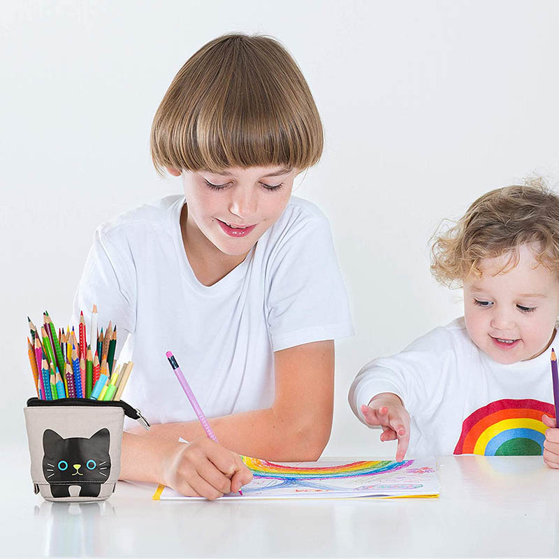 - Design : Plus besoin de cacher votre trousse dans un tiroir ! Grâce à son design Kawai en forme de chat, vous pourrez la laisser sur votre bureau, en guise de décoration. En tissu souple pour un touché tout doux, elle dispose de trois sous-compartiment vous permettant de ranger vos stylos que vous utilisez le plus tout en laissant suffisamment de place au reste.