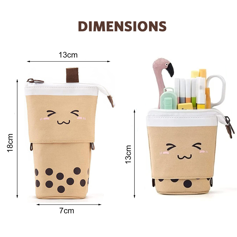 Inspiré des dessins nippon, cette Trousse Rétractable Bubble Tea Kaki est décorative et très fonctionnelle.