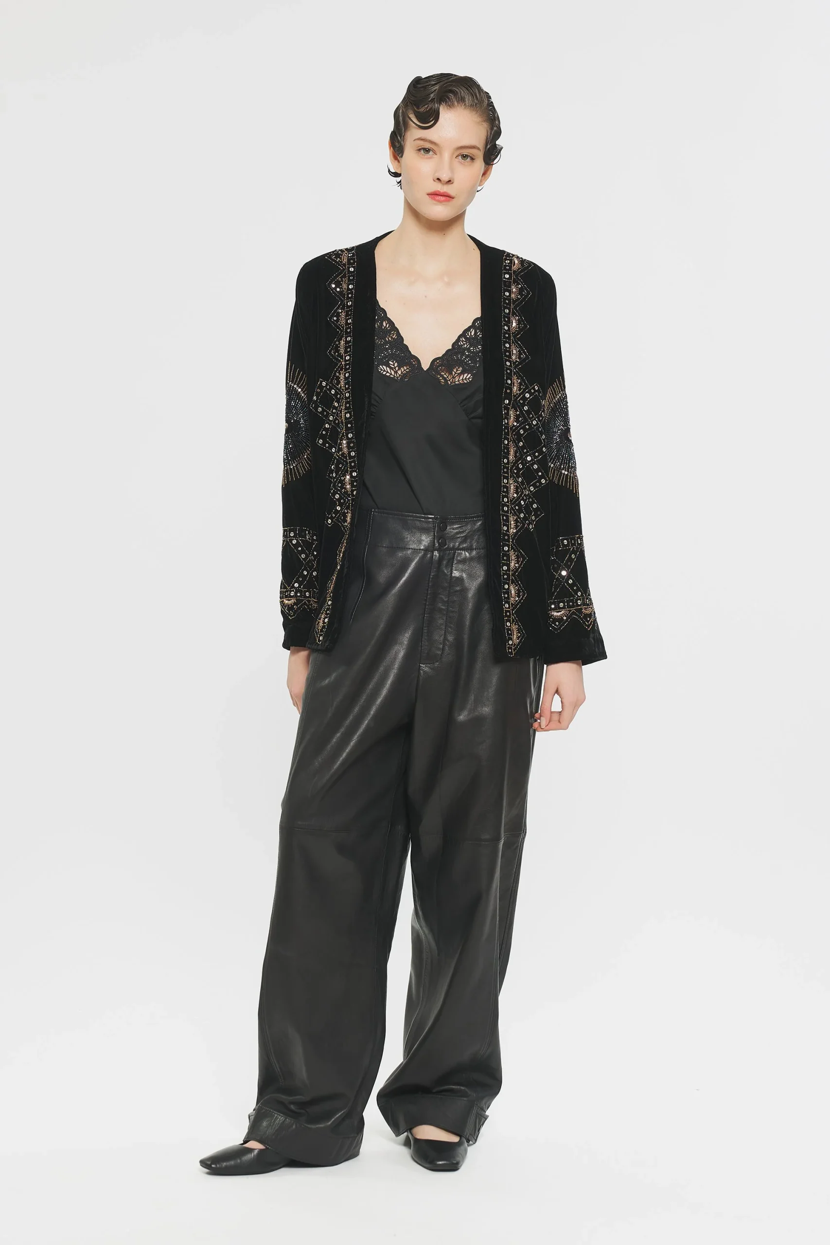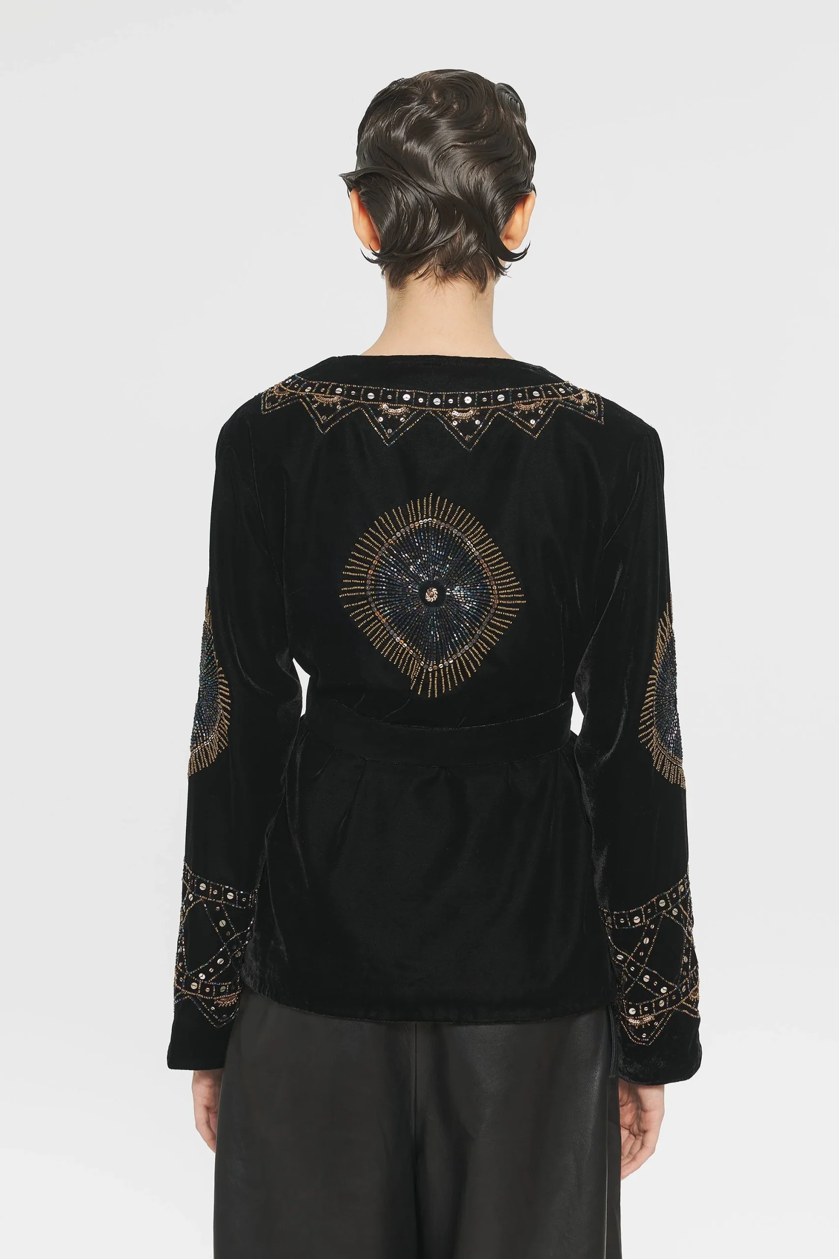 Veste en velours. Entièrement brodée à la main sur le devant et les manches. Doublée à l’intérieur.