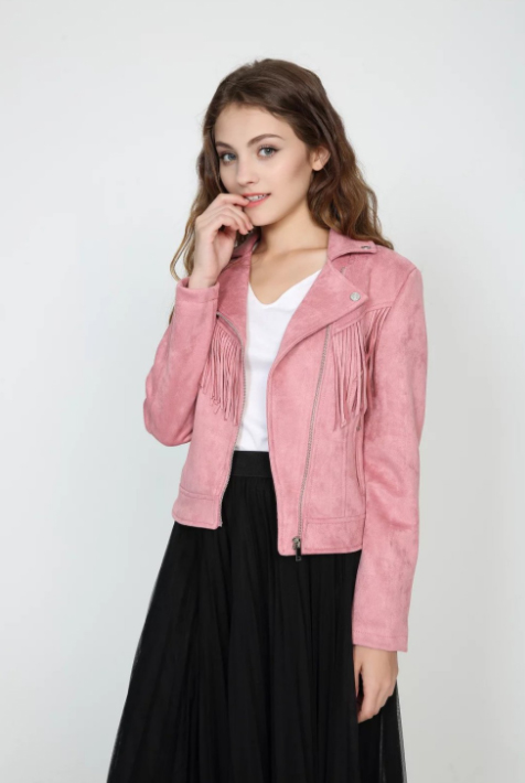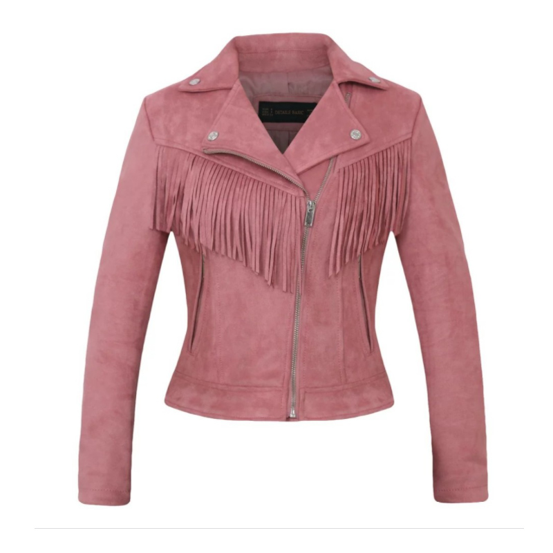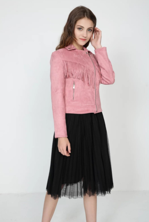Vestige du vestiaire amérindien, la veste à frange a été récupérée par les cowboys puis par les bikers dans les années 50 puis les hippies des années 1970. Bonne nouvelle la veste à frange se porte avec toute les tenues ! On adore sa coupe slim pour un look encore plus ajusté. Cette magnifique veste est dotée d’une fermeture zippée, de deux poche et de franges.Autant de détails qui ajoutent une touche bohème à cette veste boho daim franges rose très chic.