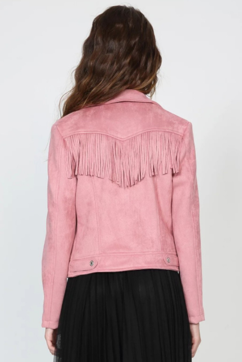 La veste à franges fait son grand retour ! Cette rentrée, la tendance venue du far ouest compte bien faire de vous une véritable cow-girl. Ajoutez sans tarder, cette magnifique veste boho daim frange rose à votre garde robe !