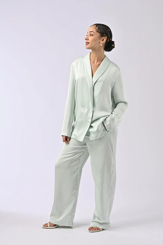 La veste Ellen Vert est une pièce élégante et moderne, conçue dans un vert pastel doux et raffiné. Son tissu fluide et léger assure un confort optimal tout en offrant une respirabilité agréable.