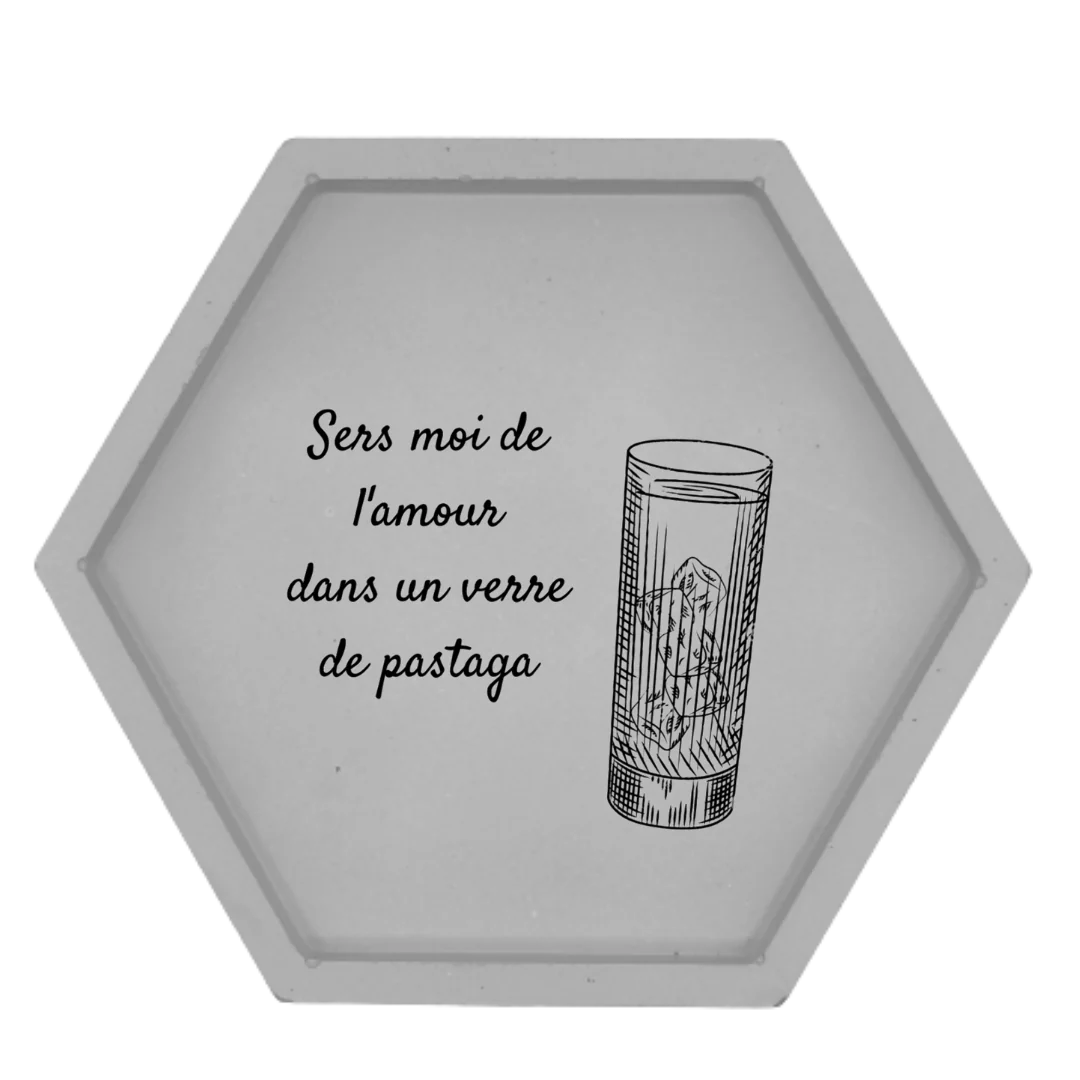 Vide poche en micro béton coulé à la main et gravé sans encre, sous face liège.